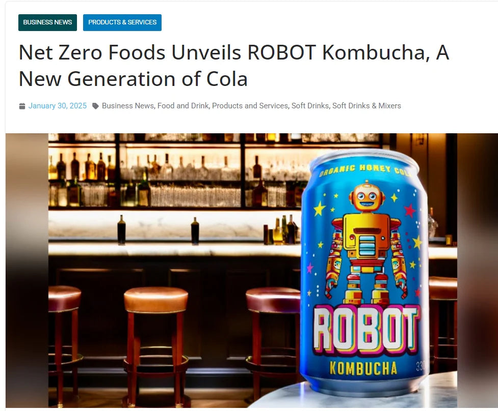 Net Zero Foods, a sustainability-driven innovator in food and drink climate positive solutions,, is thrilled to announce the launch of ROBOT Kombucha, the world’s healthiest cola. This pioneering super-premium Coke style drink combines the health benefits of organic kombucha with the natural sweetness of organic honey, creating a revolutionary and truly innovative alternative to conventional unhealthy sugary fizzy drinks..